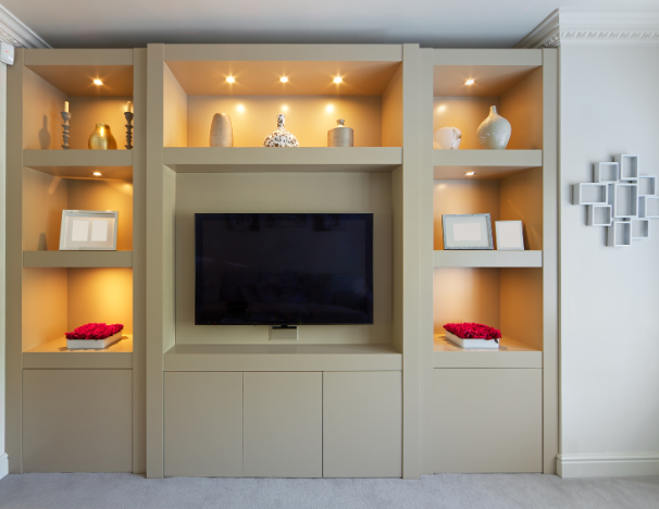 We design functional TV units with storage, stylish panels, and décor that fit perfectly into your home.